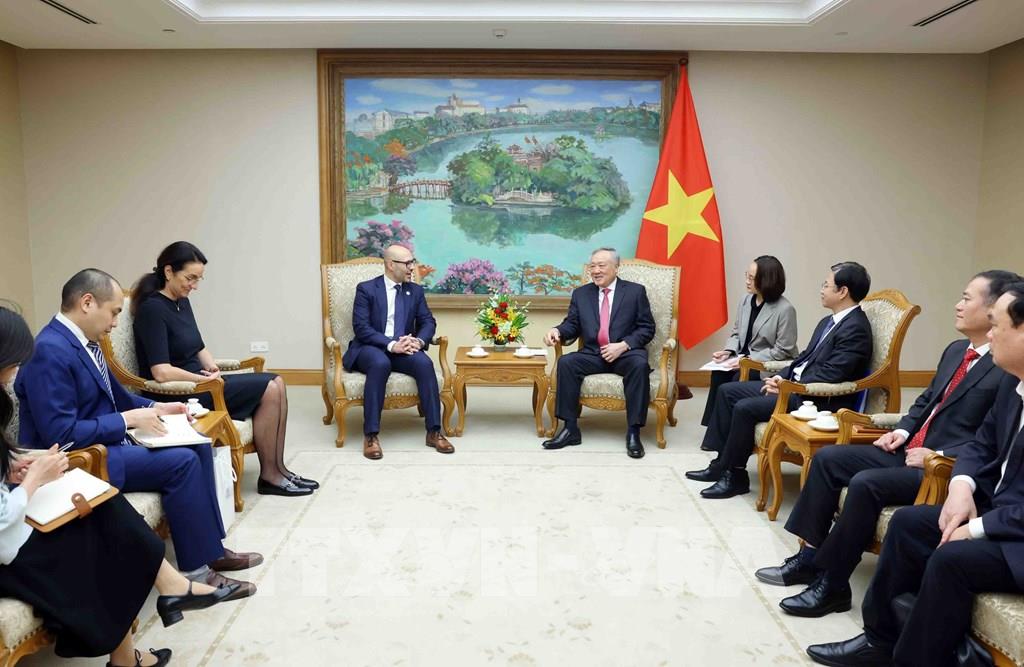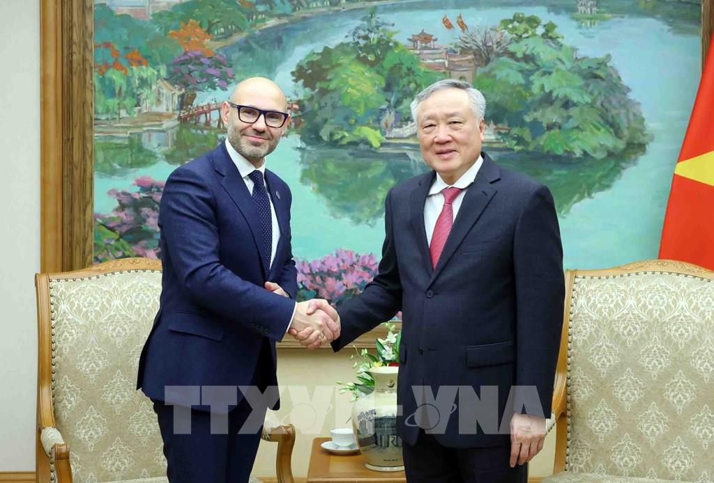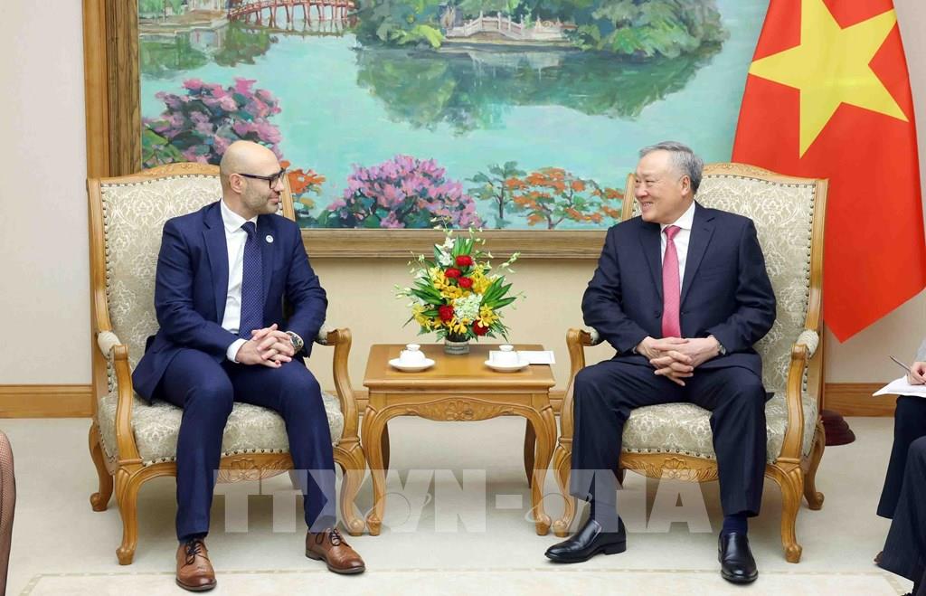 Phó Thủ tướng Thường trực Nguyễn Hòa Bình tiếp Tiến sĩ Marcin Czepelak, Tổng Thư ký Tòa Trọng tài thường trực (PCA). Ảnh: Phạm Kiên - TTXVN