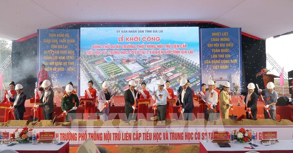 Chủ tịch UBND tỉnh Gia Lai Phạm Anh Tuấn cho biết, đây là công trình trọng điểm có ý nghĩa đặc biệt đối với sự phát triển giáo dục vùng biên giới còn nhiều khó khăn. Tỉnh cam kết huy động tối đa nguồn lực, phối hợp chặt chẽ với các bộ, ngành, địa phương, đơn vị thi công để hoàn thành đúng tiến độ, bảo đảm chất lượng, an toàn và hiệu quả. Tỉnh sẽ tiếp tục huy động các nguồn lực hợp pháp để hoàn thiện hệ thống cơ sở vật chất, mở rộng mô hình giáo dục chất lượng, hướng đến mục tiêu “không để học sinh nào phải bỏ học vì hoàn cảnh khó khăn.