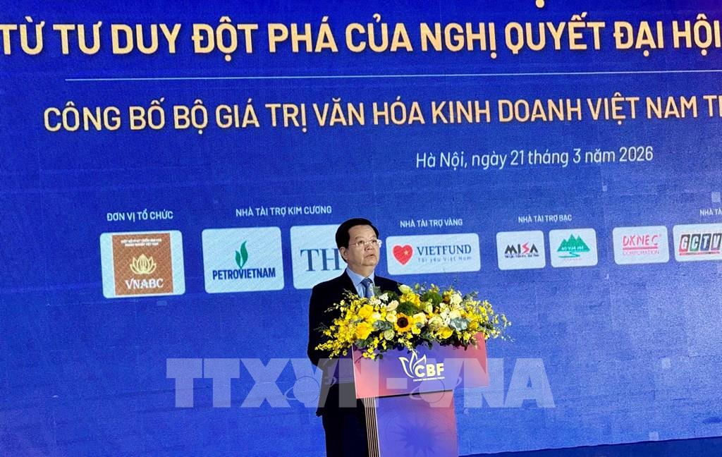 Chiều 21/3, Phó Thủ tướng Chính phủ Mai Văn Chính dự và phát biểu chỉ đạo tại Diễn đàn quốc gia thường niên “Văn hóa với doanh nghiệp” năm 2026 với chủ đề “Văn hóa kinh doanh Việt Nam - Hệ giá trị mới từ tư duy đột phá của Nghị quyết Đại hội Đảng lần thứ XIV” tại Hà Nội.