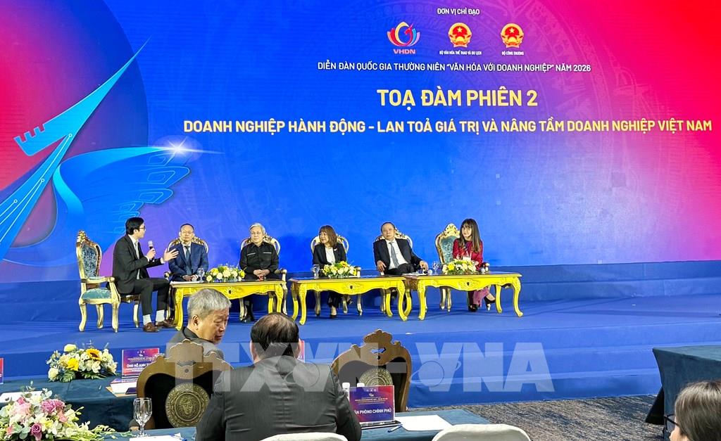 Diễn đàn Quốc gia “Văn hóa với Doanh nghiệp” có diễn ra 2 phiên tọa đàm, với sự tham gia của các chuyên gia uy tín hàng đầu, tạo tiếng nói đa chiều và phù hợp với thực tiễn. Tại phiên tọa đàm số 1 với chủ đề “Chính phủ kiến tạo - Hoàn thiện thể chế cho hệ giá trị văn hóa kinh doanh mới”, các đại biểu tập trung phân tích tư duy phát triển mới được đặt ra từ Nghị quyết Đại hội XIV, làm rõ vai trò kiến tạo của Nhà nước trong việc xây dựng môi trường kinh doanh minh bạch, thuận lợi cho doanh nghiệp phát triển. Các diễn giả cũng thảo luận về việc hoàn thiện thể chế, định hình hệ giá trị Văn hóa Kinh doanh Việt Nam, tiếp tục hoàn thiện Bộ Tiêu chí Văn hóa Kinh doanh Việt Nam và hướng tới xây dựng Bộ chỉ số Văn hóa Kinh doanh Việt Nam - như một công cụ thúc đẩy sự phát triển bền vững và nâng cao năng lực cạnh tranh quốc gia. Phiên tọa đàm số 2 là “Doanh nghiệp hành động - Lan tỏa giá trị và nâng tầm doanh nghiệp Việt Nam” tập trung vào các giải pháp thực tiễn nhằm chuyển hóa giá trị văn hóa thành chuẩn mực hành động trong quản trị và phát triển doanh nghiệp. Các ý kiến nhấn mạnh việc tích hợp văn hóa vào chiến lược phát triển, xây dựng đạo đức kinh doanh, tăng cường minh bạch, thực hiện trách nhiệm xã hội và lan tỏa các giá trị tốt đẹp của doanh nghiệp Việt Nam trong hội nhập quốc tế… Các ý kiến chia sẻ tại 2 phiên tọa đàm đã truyền tải đến cộng đồng thông điệp chiến lược, phản ánh tinh thần điều hành phát triển của Việt Nam trong giai đoạn mới: Nhà nước đóng vai trò kiến tạo thể chế và môi trường phát triển, doanh nghiệp là lực lượng trung tâm của tăng trường và đổi mới sáng tạo, văn hóa trở thành nền tảng giá trị dẫn dắt sự phát triển bền vững của nền kinh tế.Tin liên quan