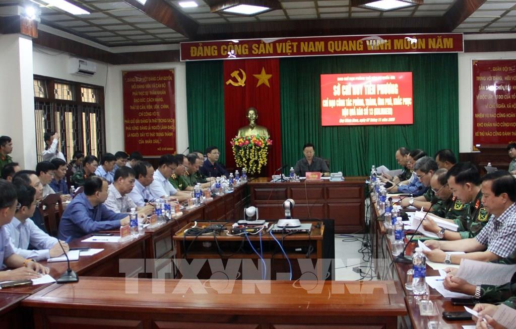Đại diện Bộ Xây dựng báo cáo Phó Thủ tướng thông tin liên quan đến sự cố tàu hàng mắc cạn trên vùng biển Quảng Ngãi. Để tránh nguy cơ tàu bị chìm gây tràn dầu và ô nhiễm môi trường, Bộ sẽ tổ chức lai dắt tàu ra khỏi khu vực mắc cạn. Ngoài ra, hệ thống đường sắt và đường bộ nhiều nơi bị gián đoạn, ách tắc giao thông, các lực lượng đang khẩn trương khắc phục. Trung tướng Lê Quang Đạo, Phó Tổng Tham mưu trưởng Quân đội nhân dân Việt Nam khẳng định quân đội luôn sẵn sàng lực lượng, phương tiện để cứu hộ, cứu nạn khi có yêu cầu. Bộ Công an đã huy động lực lượng cùng các địa phương đảm bảo giao thông thông suốt. Kết luận buổi làm việc, Phó Thủ tướng Trần Hồng Hà khẳng định, bão số 13 là cơn bão mạnh nhưng nhờ dự báo kịp thời, sát thực tế và chỉ đạo điều hành quyết liệt, đúng hướng, nên thiệt hại được hạn chế ở mức thấp nhất. Các địa phương đã chủ động phòng chống, đưa ra nhiều kịch bản, phương án hợp lý, di dân phù hợp, tổ chức cấm biển nghiêm túc và đặc biệt thực hiện hiệu quả phương châm “4 tại chỗ”, nhờ đó Việt Nam là một trong những nước chịu thiệt hại thấp nhất trong khu vực. Để sớm ổn định lại cuộc sống sau thiên tai, chính quyền, các sở, ban ngành lực lượng liên quan cần sớm tổ chức khắc phục hệ thống điện, đường tại các địa phương bị thiệt hại. Lực lượng quân đội tập trung tìm kiếm người bị mất tích. Các địa phương sớm có phương án xây nhà cho những hộ dân bị sập nhà hoàn toàn, sửa chữa, khắc phục nhà bị tốc mái.Đối với các hộ dân có người chết và mất tích, chính quyền địa phương nhanh chóng đến thăm hỏi và hỗ trợ. Chính phủ sẽ cân đối ngân sách, hỗ trợ các tỉnh tùy vào thực tế. Bên cạnh đó, các địa phương tiếp tục đánh giá về tình hình cuộc sống của người dân để có những điều chỉnh hợp lý, tạo điều kiện cho người dân ổn định cuộc sống sau thiên tai.