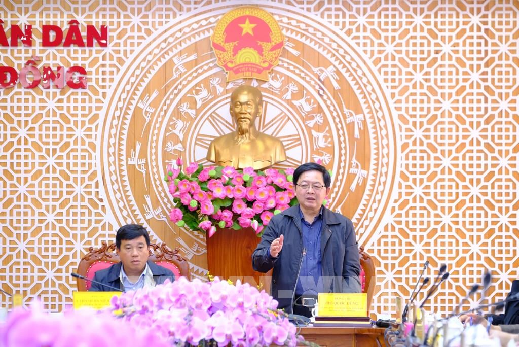 Tại buổi làm việc, Phó Thủ tướng Hồ Quốc Dũng chia sẻ với chính quyền địa phương, nhân dân tỉnh Lâm về những thiệt hại do mưa lũ bất thường trong những ngày qua. Phó Thủ tướng đánh giá cao sự chủ động của lãnh đạo, cơ quan ban ngành, địa phương trong việc phòng chống, di dời tài sản giúp giảm thiệt hại cho người dân. Thời gian tới mưa lũ còn diễn biến phức tạp, tỉnh Lâm Đồng cần có biện pháp thống kê các điểm nguy cơ sạt lở, vùng ngập lụt nguy hiểm để chủ động di dời người và tài sản đảm bảo an toàn.Lâm Đồng cần rà soát các hồ đập thủy điện, thủy lợi có nguy cơ mất an toàn; lưu ý các chủ hồ chứa, chấn chỉnh việc điều tiết xả lũ trong mùa mưa, nhằm ít gây thiệt hại cho người dân vùng hạ du và phải có trách nhiệm, phương án khắc phục, hỗ trợ thiệt hại cho người chịu ảnh hưởng bởi xả lũ.