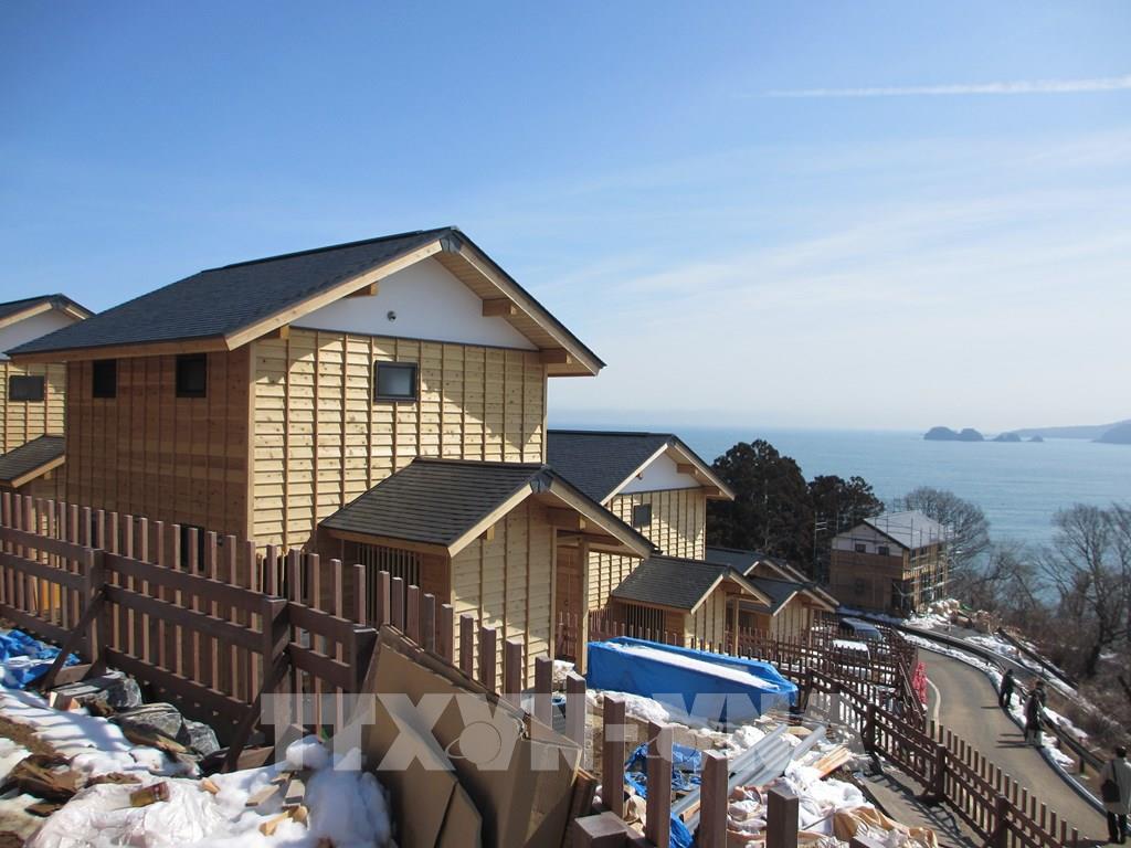 Những ngôi nhà mới mọc lên ở làng Shirahama ở tỉnh Miyagi (Nhật Bản). Ảnh: Đào Thanh Tùng - Phóng viên TTXVN tại Nhật Bản