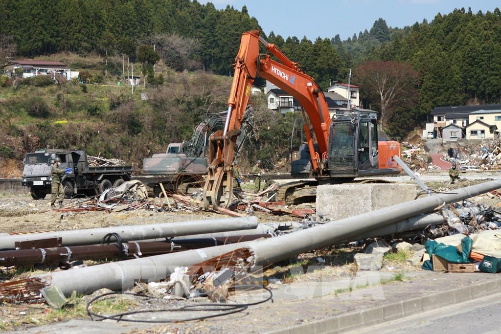 Công tác khắc phục hậu quả ở khu vực Đông Bắc vào thời điểm tháng 4/2011. Ảnh tư liệu: Đào Thanh Tùng - viên TTXVN tại Nhật Bản