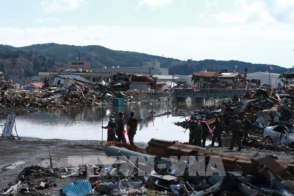 Các nhân viên cứu hộ đang tìm kiếm người mất tích sau thảm họa tại. Ảnh tư liệu: Đào Thanh Tùng - Phóng viên TTXVN tại Nhật Bản