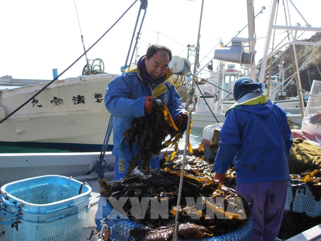 Khai thác tảo biển tại cảng cá thuộc tỉnh Miyagi (Nhật Bản). Ảnh: Đào Thanh Tùng - Phóng viên TTXVN tại Nhật Bản