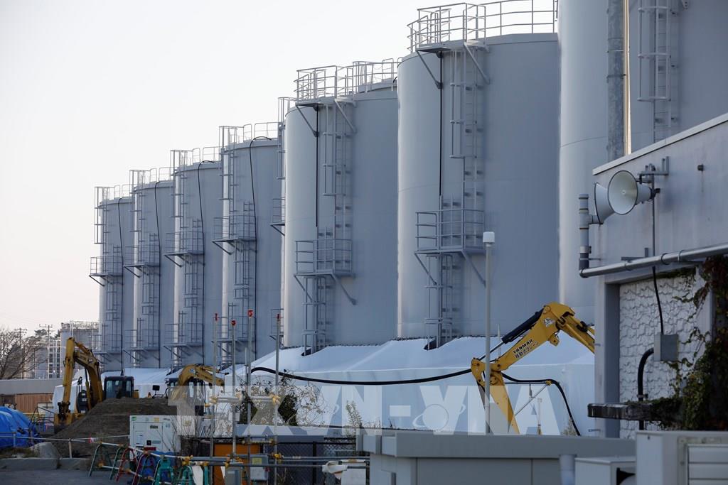 Các bể chứa nước thải sau khi được sử dụng để làm mát các thanh nhiên liệu đã qua sử dụng ở các lò phản ứng đang gặp sự cố. Ảnh: Đào Thanh Tùng-phóng viên TTXVN tại Nhật Bản
