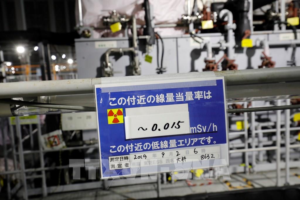 Nồng độ phóng xạ trong khu xử lý nước thải sau khi được sử dụng để làm mát các thanh nhiên liệu đã qua sử dụng ở các lò phản ứng đang gặp sự cố. Ảnh: Đào Thanh Tùng-phóng viên TTXVN tại Nhật Bản