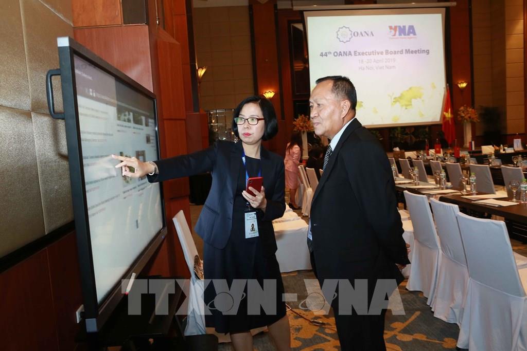 Phó Tổng giám đốc Vũ Việt Trang giới thiệu hoạt động hợp tác quốc tế của TTXVN với đại biểu tham dự Hội nghị Ban Chấp hành Tổ chức các hãng thông tấn châu Á – Thái Bình Dương (OANA) lần thứ 44, ngày 19/4/2019, tại Hà Nội. Ảnh: TTXVN