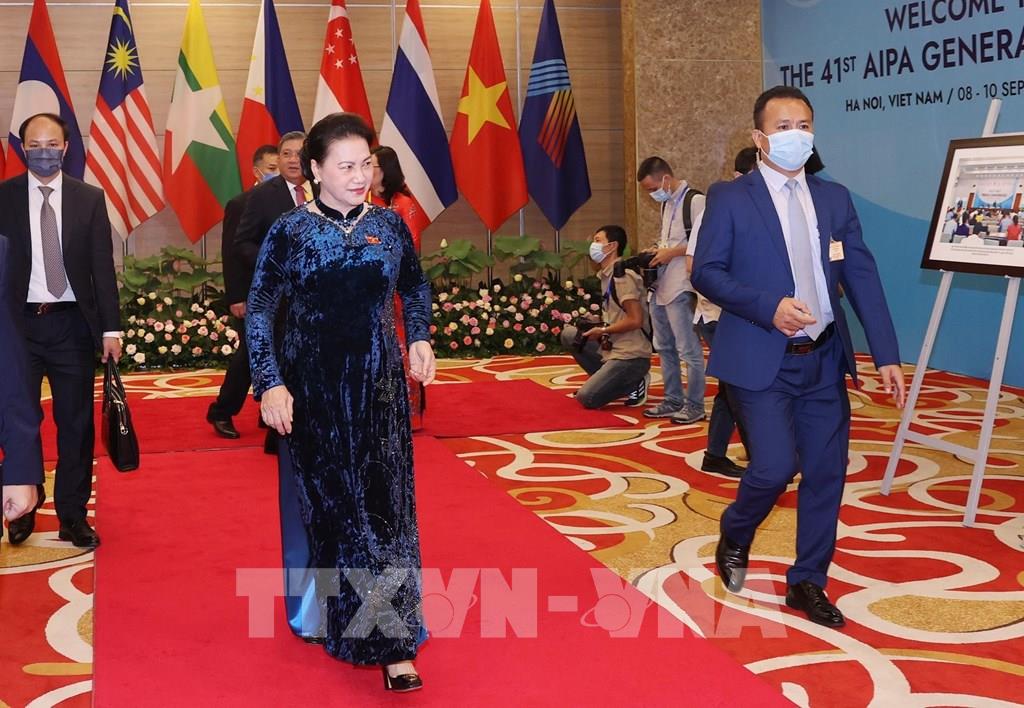 Chủ tịch Quốc hội Nguyễn Thị Kim Ngân, Chủ tịch AIPA- 41 đến dự lễ khai mạc. Ảnh: TTXVN
