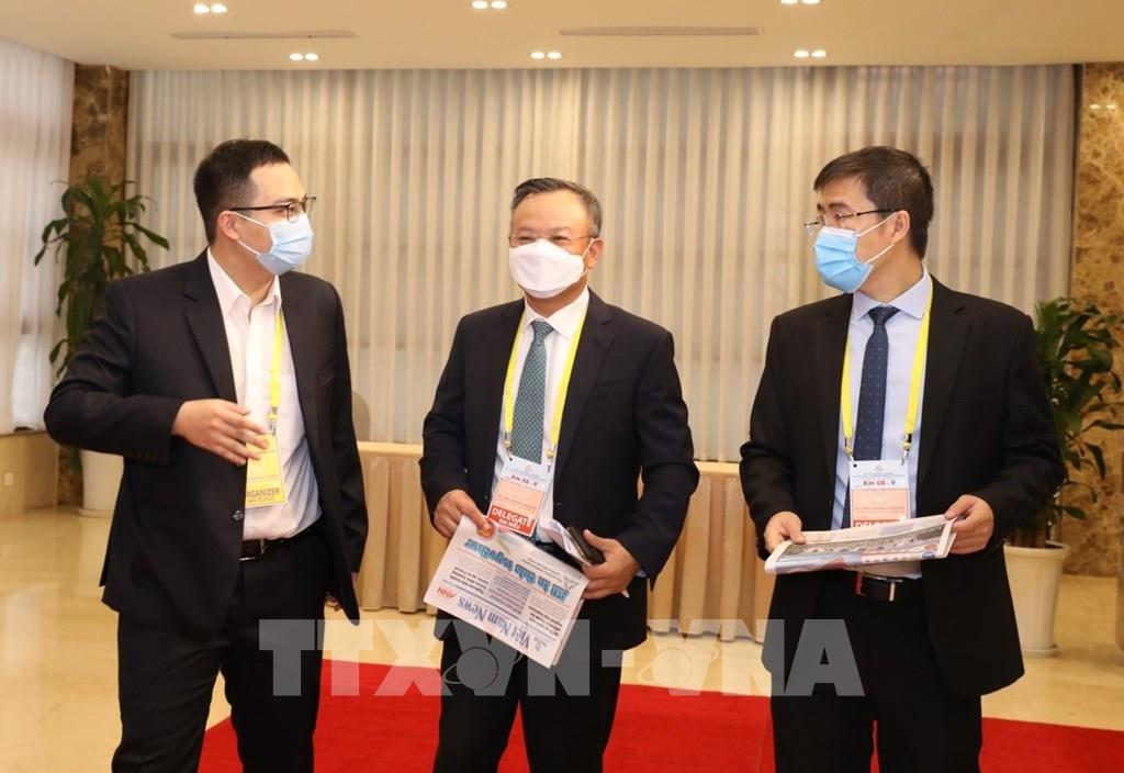 Đại biểu xem báo Việt Nam News tại lễ khai mạc AIPA-41. Ảnh: Văn Điệp - TTXVN