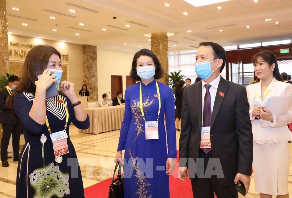 Các đại biểu sử dụng khẩu trang dự phiên khai mạc tại Hà Nội. Ảnh: Văn Điệp - TTXVN