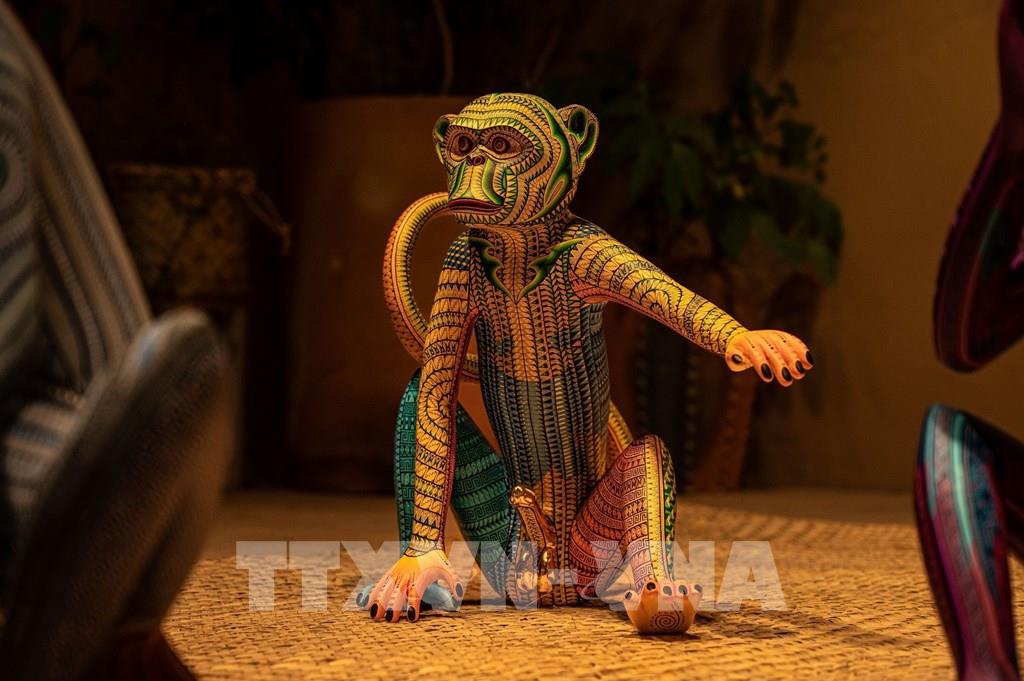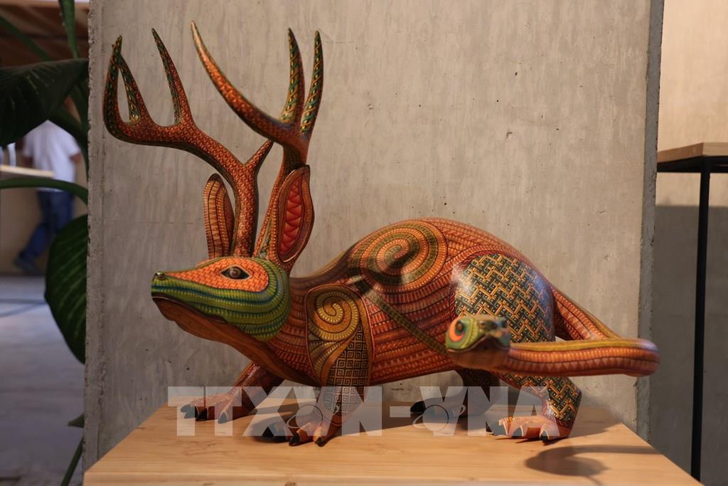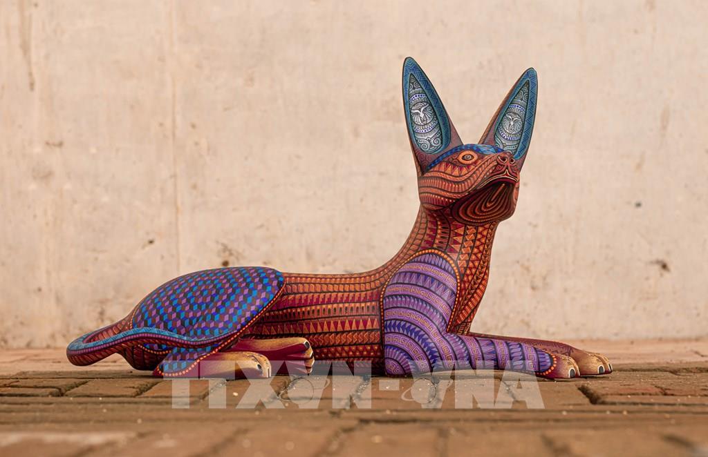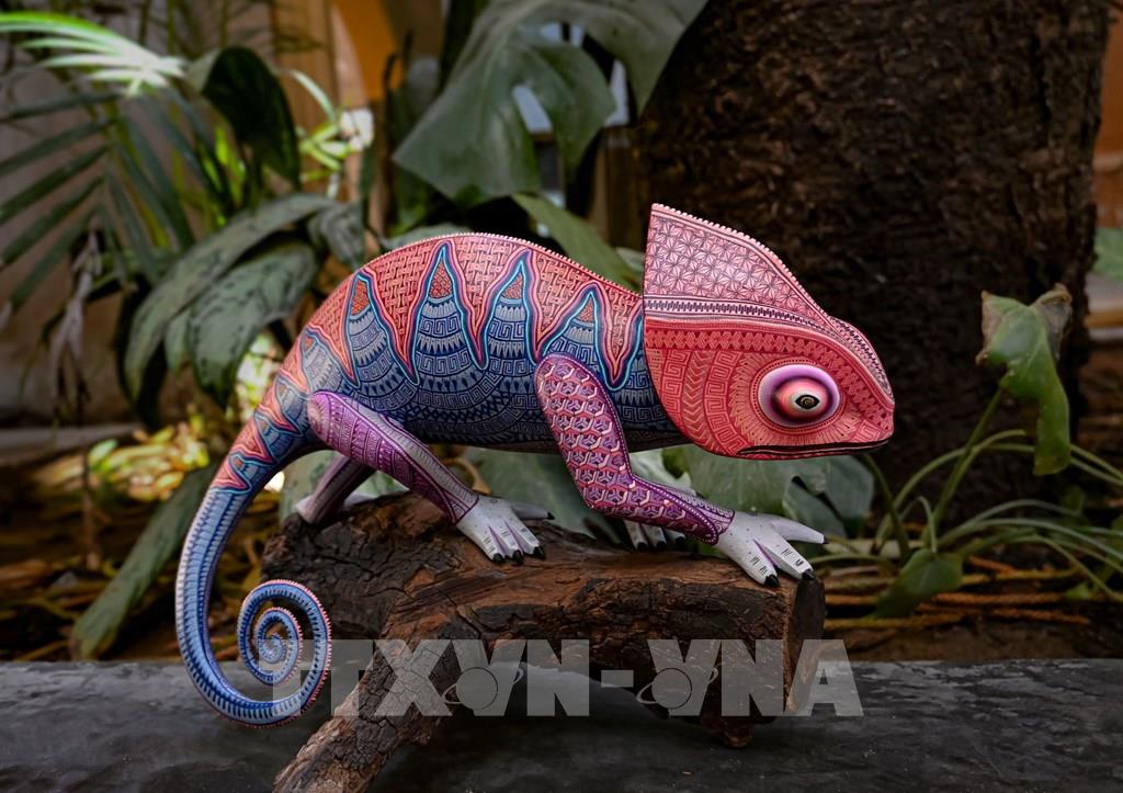 Bắt nguồn từ những nghi thức tôn giáo có lịch sử từ hàng ngàn năm trước của người Zapotec sinh sống ở phía Nam Mexico, nghệ thuật Alebrijes khắc họa những linh vật, nhưng động vật có thật và cả những loài vật chỉ tồn tại trong trí tưởng tượng dân gian. Ảnh: Trương Phi Hùng-PV TTXVN