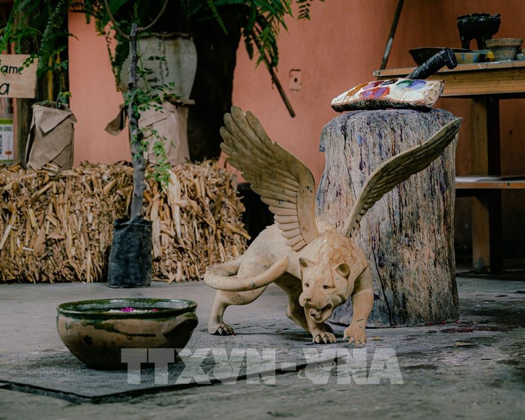Ngoài làm các sản phẩm truyền thống, thời gian gần đây nhiều xưởng thị trấn San Martín Tilcajete nhận làm tượng theo phong cách Alebrijes từ khách hàng trong và ngoài nước. Ảnh: Trương Phi Hùng-PV TTXVN