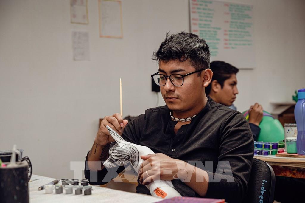 Nhằm duy trì nghề truyền thống, chính quyền bang Oaxaca hiện phối hợp cùng các xưởng sản xuất Alebrijes mở các lớp đào tạo cho các thế hệ kế cận. Ảnh: Trương Phi Hùng-PV TTXVN