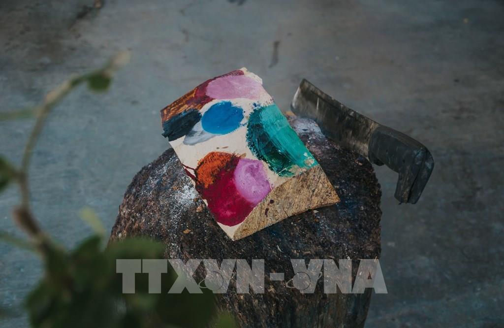 Toàn bộ màu trang trí có nguồn gốc từ thiên nhiên, không gây hại đến môi trường cũng như ảnh hưởng đến người sử dụng. Ảnh: Trương Phi Hùng-PV TTXVN