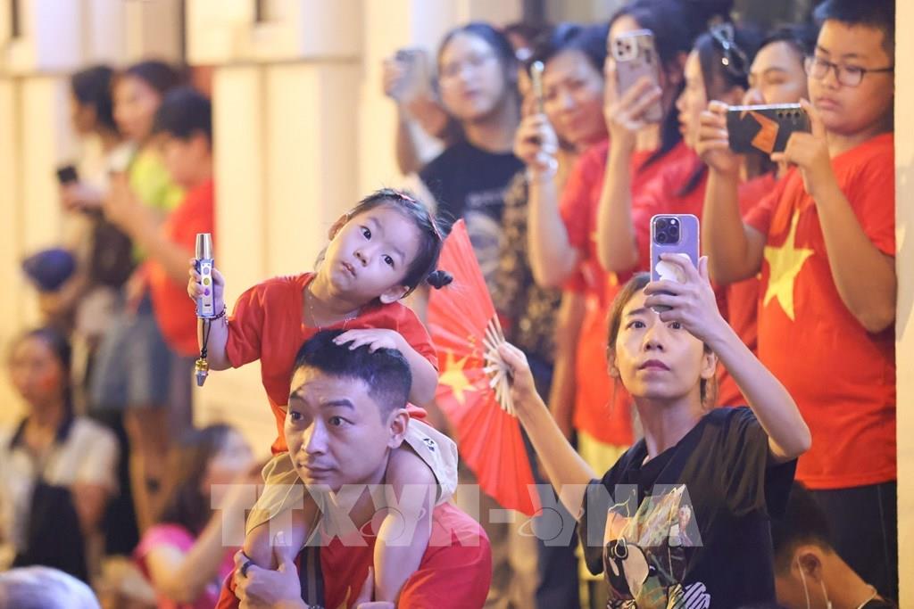 Hàng vạn người dân hát Quốc ca nhân sự kiện Tổng hợp luyện diễu binh, diễu hành lần thứ hai của sự kiện A80. Ảnh: Văn Điệp - TTXVN