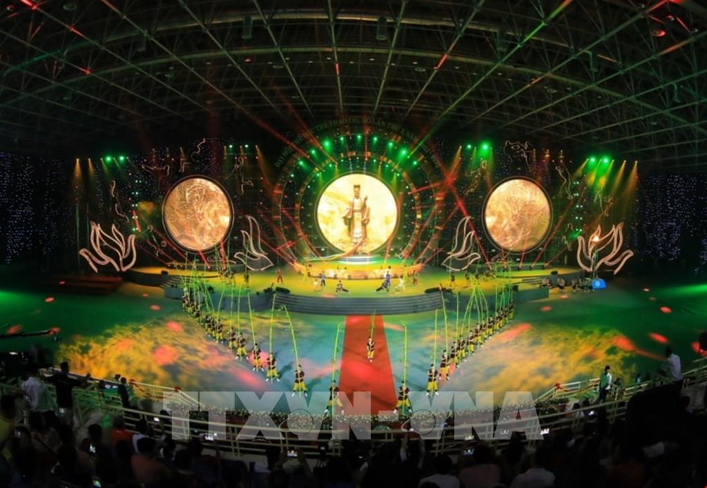 Chương trình biểu diễn nghệ thuật tại buổi lễ. Ảnh: Hoàng Hiếu - TTXVN