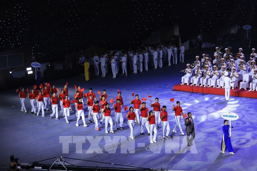 Các đoàn vận động viên tham gia đại hội thể thao. Ảnh: Tuấn Anh - TTXVN