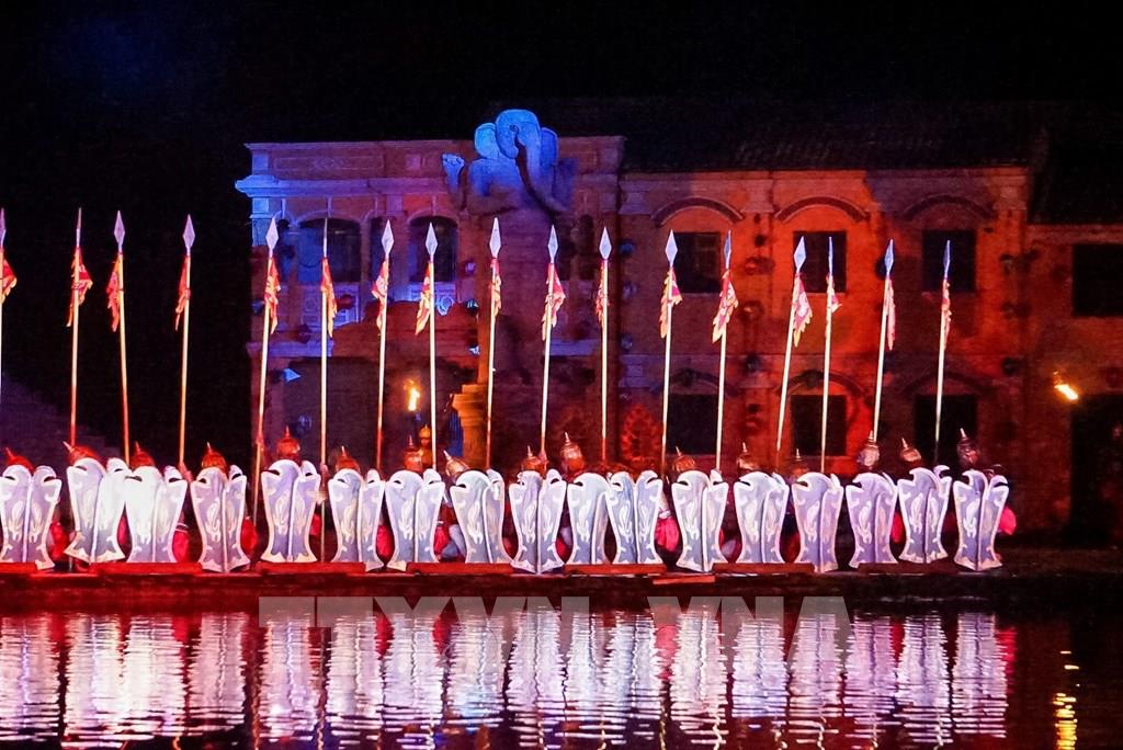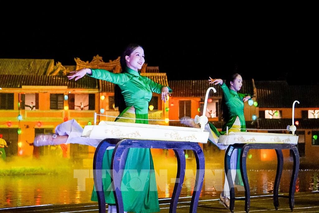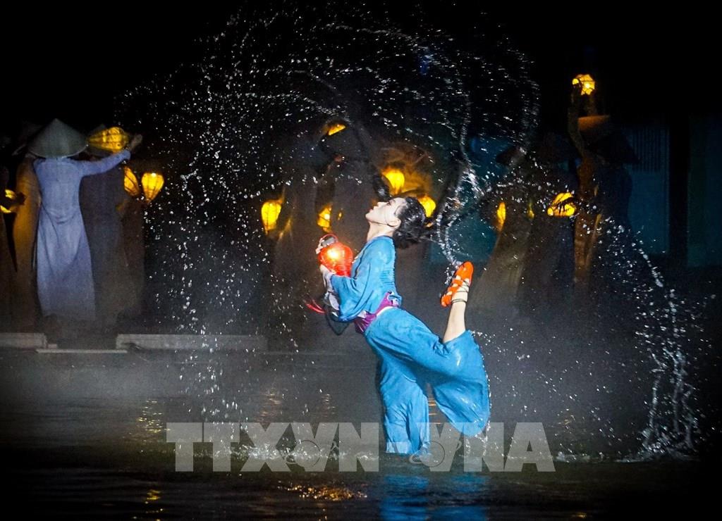 Một tiết mục kết hợp giữa trình diễn, múa, âm nhạc, ánh sáng... tại "Ký ức Hội An". Ảnh: Khánh Hoà – TTXVN