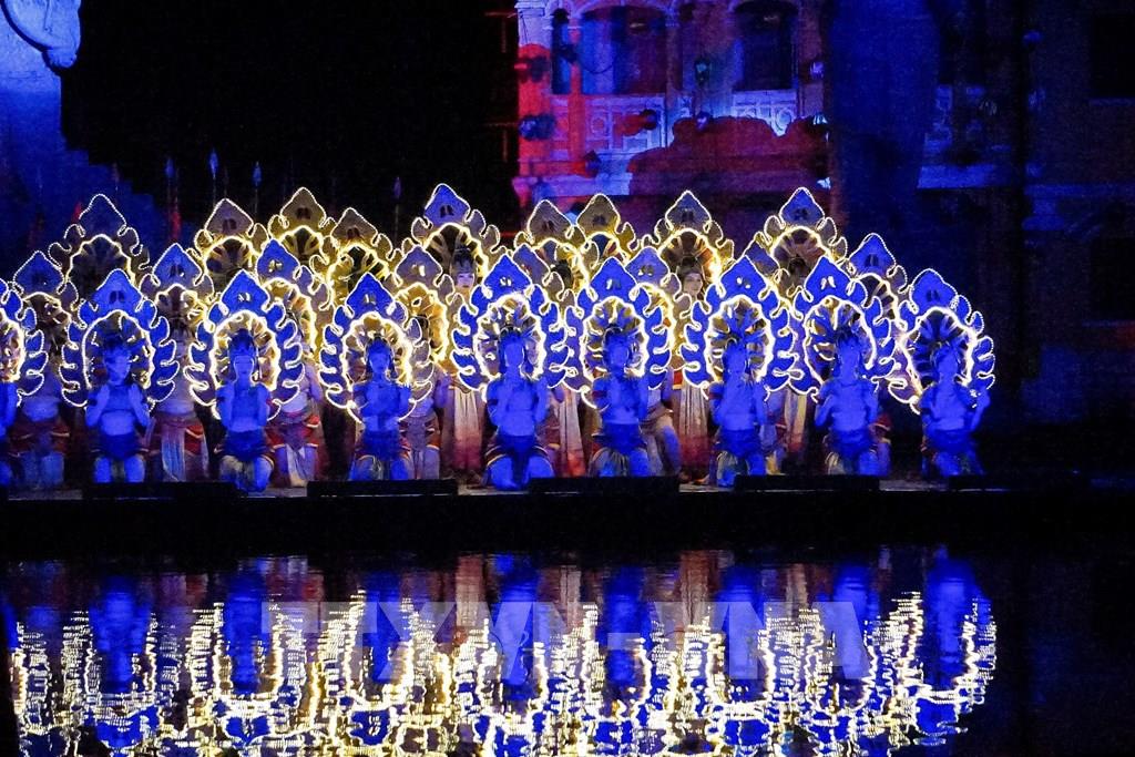 Chương trình kết hợp nhiều yếu tố âm thanh, ánh sáng... mang đến cho người xem những trải nghiệm sống động. Ảnh: Khánh Hoà - TTXVN