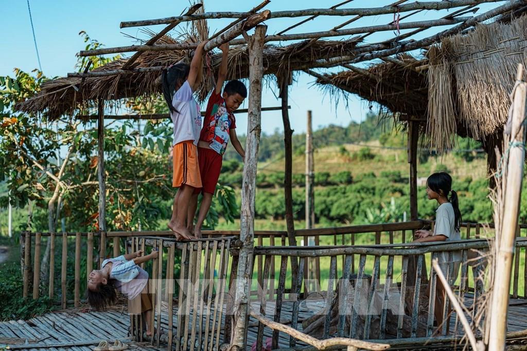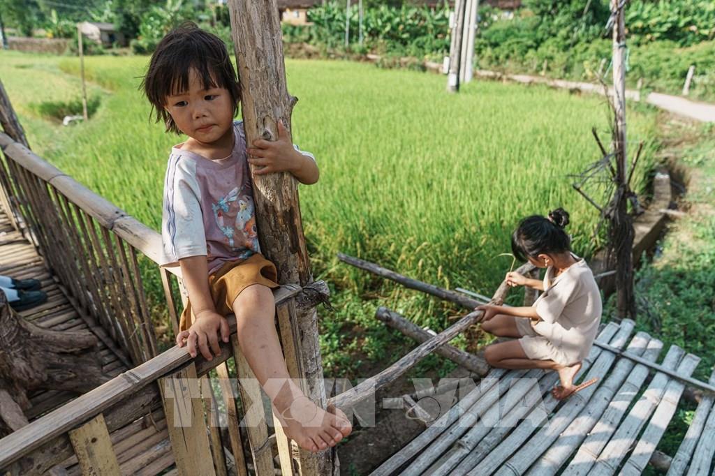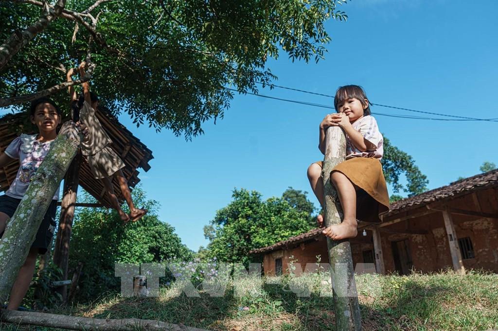 Trẻ em vui chơi trong không gian làng bản rất hồn nhiên và bình dị. Ảnh: Phạm Tuấn Anh - TTXVN