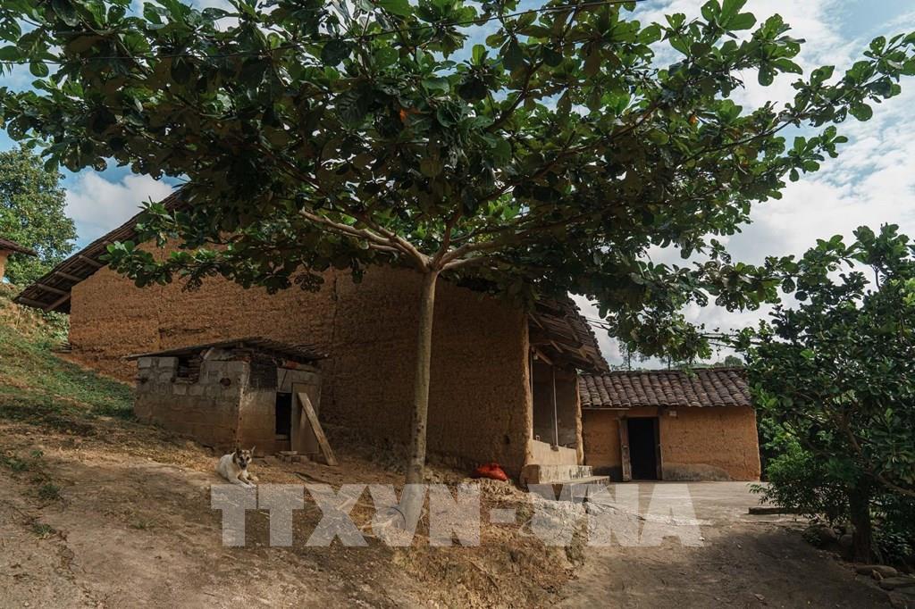 Nếp nhà đất đơn sơ, lưu giữ dấu ấn kiến trúc truyền thống của vùng nông thôn miền núi. Ảnh: Phạm Tuấn Anh - TTXVN