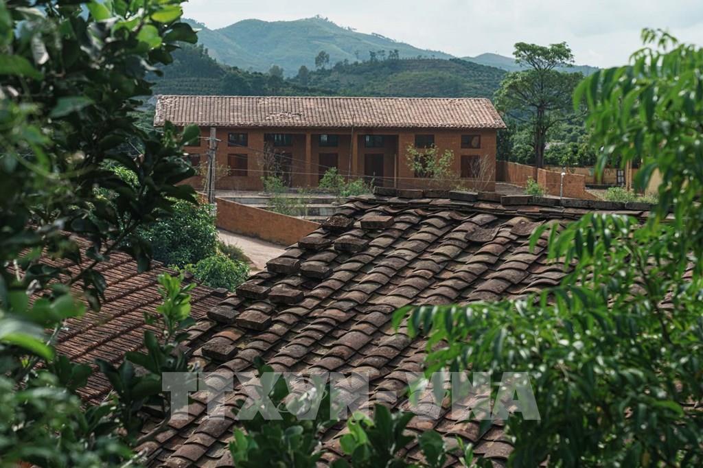 Nếp nhà đất truyền thống với mái ngói cũ, lưu giữ dấu ấn thời gian và kiến trúc đặc trưng vùng nông thôn miền núi. Ảnh: Phạm Tuấn Anh - TTXVN