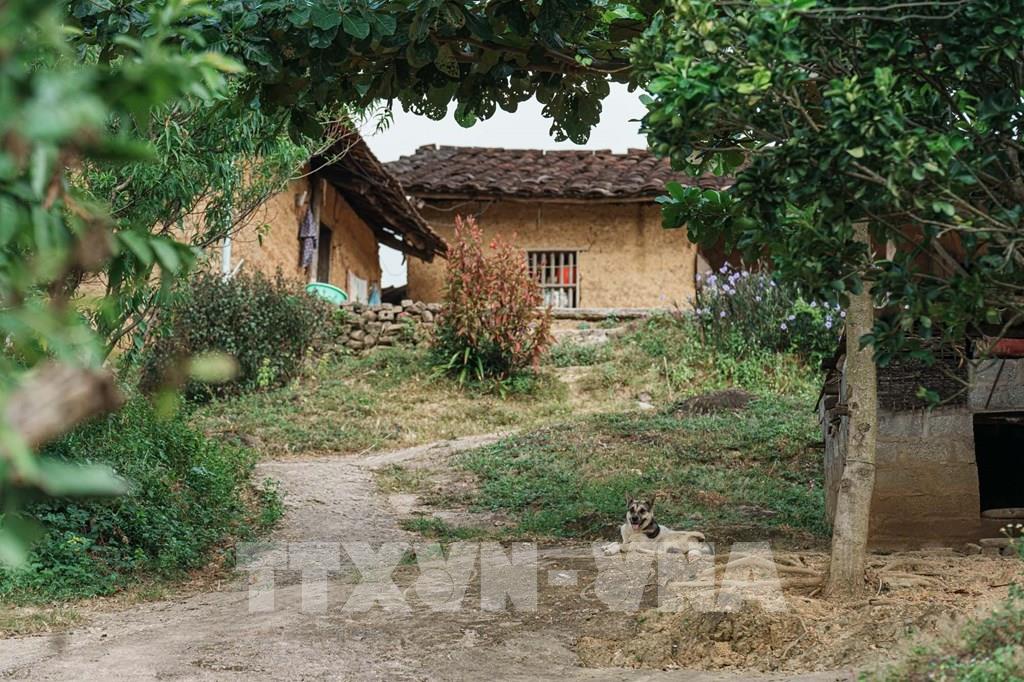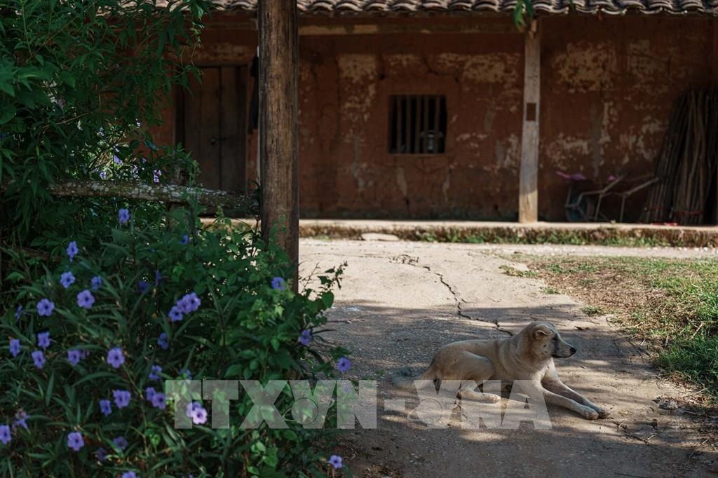Một buổi chiều yên ả tại thôn Bắc Hoa, chú chó nằm lặng dưới hiên nhà, nhịp sống bình dị, chậm rãi của vùng quê còn giữ nguyên vẻ nguyên sơ.. Ảnh: Phạm Tuấn Anh - TTXVN
