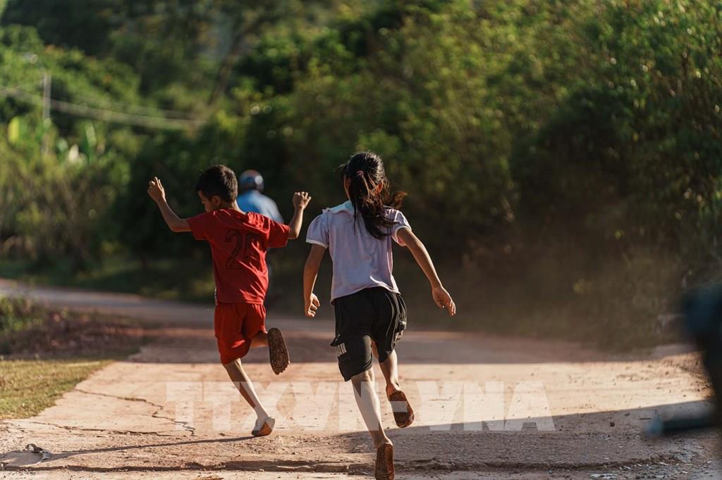 Trẻ em nô đùa trên con đường làng, mang đến cảm giác bình yên và chân thực. Ảnh: Phạm Tuấn Anh - TTXVN