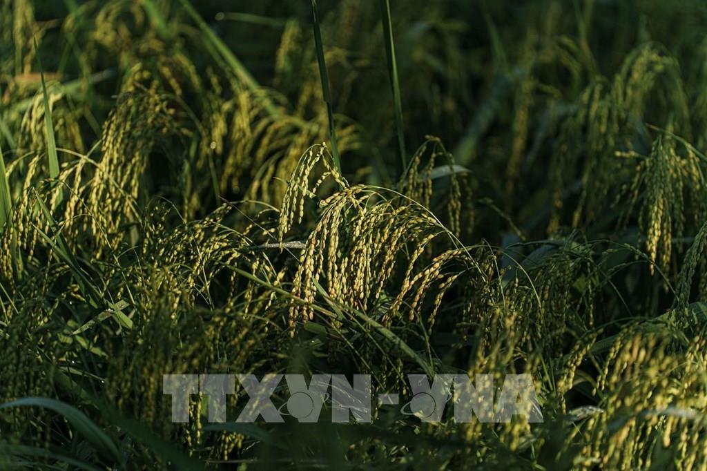 Đến thôn Bắc Hoa vào mùa lúa chín chúng ta sẽ thấy cánh đồng lúa vàng ươm và những bông lúa trĩu hạt vào mùa thu hoạch, biểu tượng cho lao động cần mẫn của người dân. Ảnh: Phạm Tuấn Anh - TTXVN
