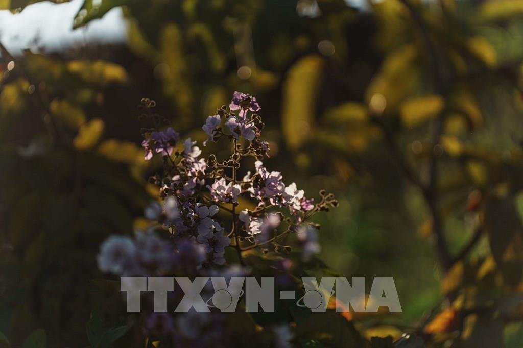 Hoa bằng lăng ven đường khoe sắc trong ánh nắng, góp phần tạo nên vẻ đẹp tự nhiên, gần gũi của vùng quê. Ảnh: Phạm Tuấn Anh - TTXVN