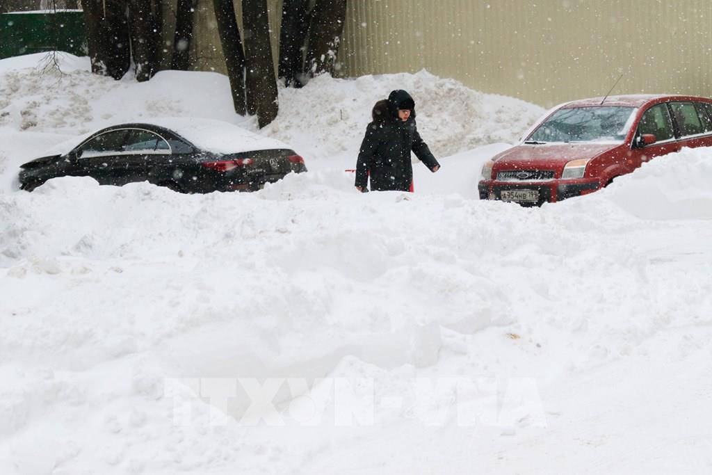 Việc đi lại của người dân Moskva gặp nhiều khó khăn do mật độ tuyết rơi dày. Ảnh: Trần Hiếu - PV TTXVN tại Nga