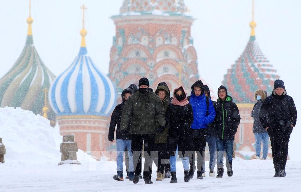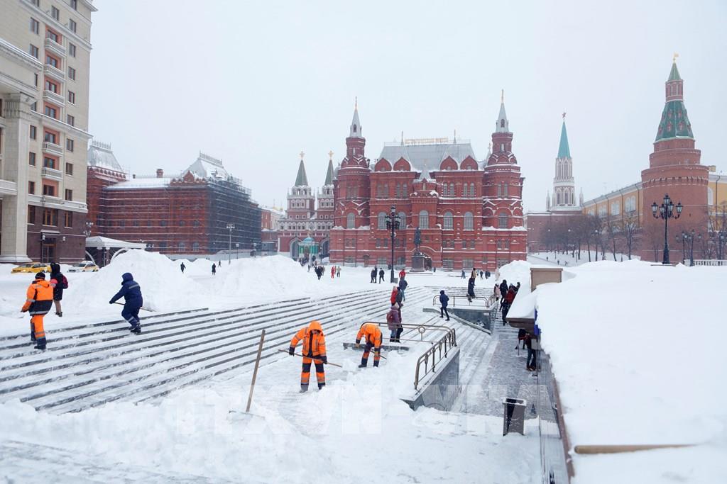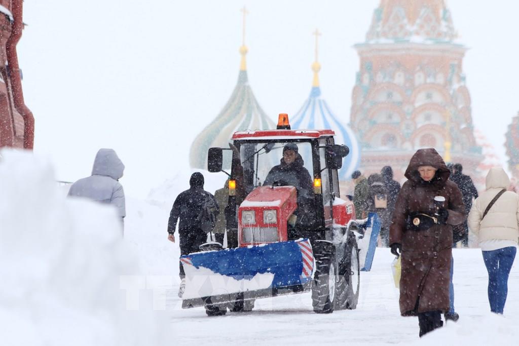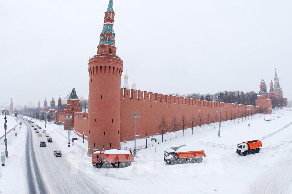 Trong ngày 13/2, thủ đô Moskva ghi nhận lượng tuyết rơi dày gần đạt mức kỷ lục trong vòng 142 năm qua. Ảnh: Trần Hiếu - PV TTXVN tại Nga