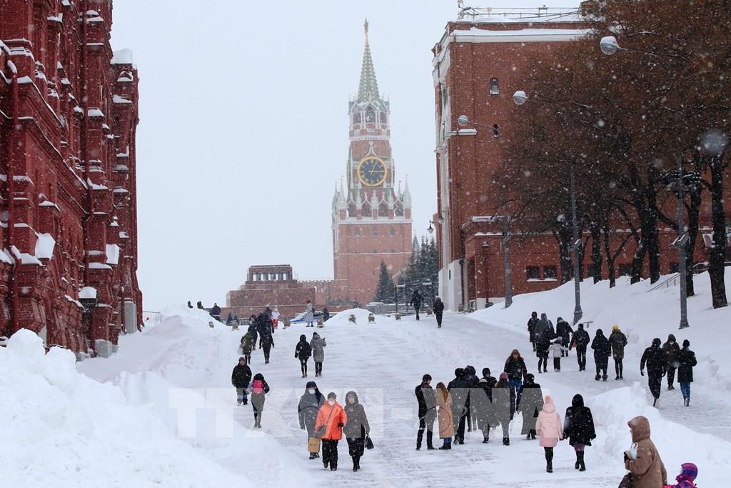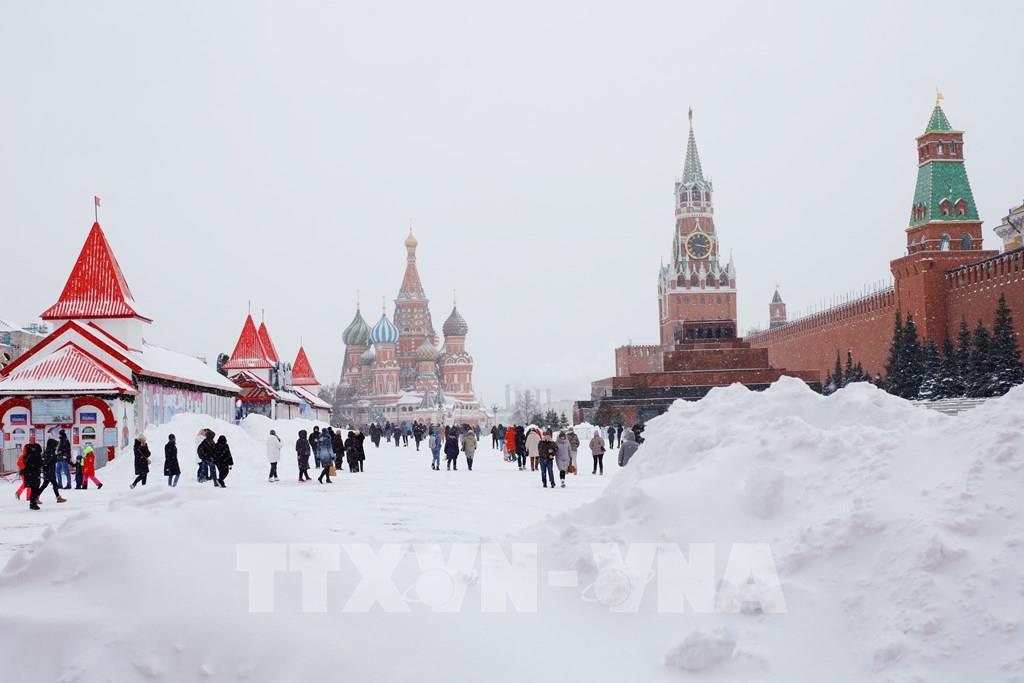 Quảng trường Đỏ ngập trong tuyết trắng. Ảnh: Trần Hiếu - PV TTXVN tại Nga