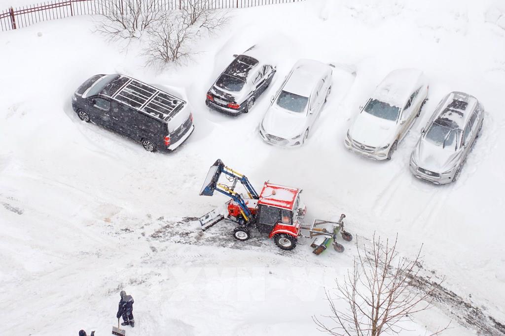 Các phương tiện chuyên dụng được huy động để dọn tuyết tại các khu chung cư ở Moskva. Ảnh: Trần Hiếu - PV TTXVN tại Nga