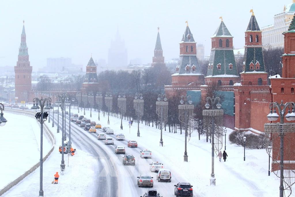 Những trận mưa tuyết lớn gây ách tắc giao thông trên nhiều tuyến phố ở thủ đô Nga. Ảnh: Trần Hiếu - PV TTXVN tại Nga
