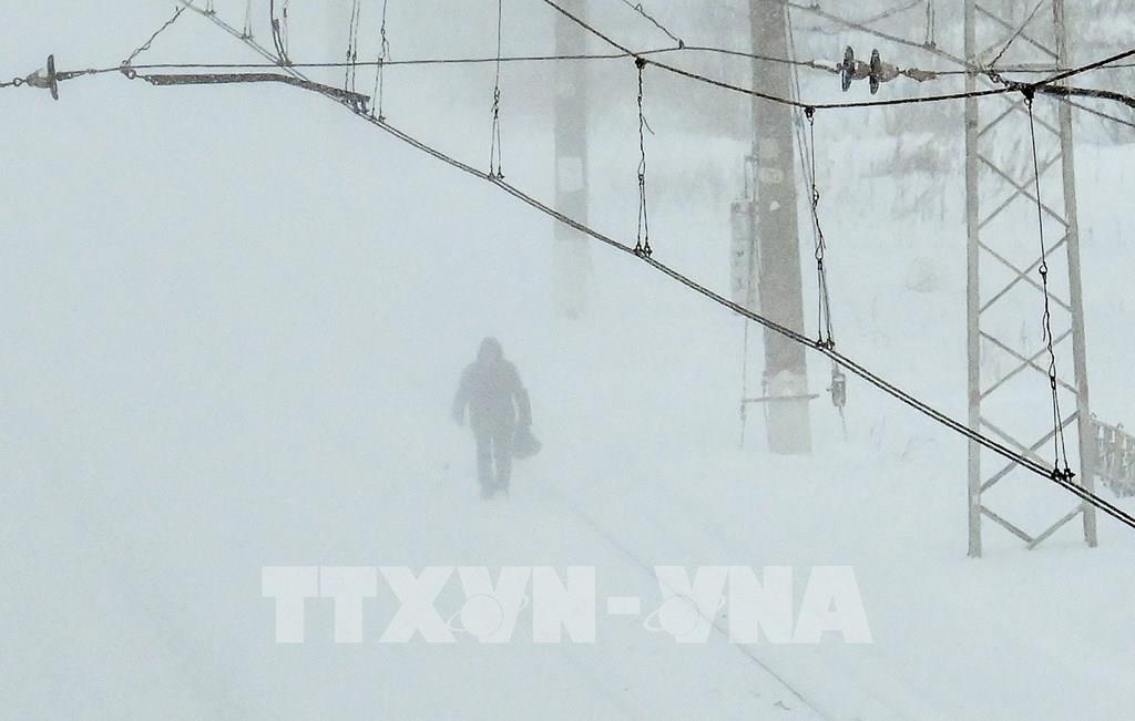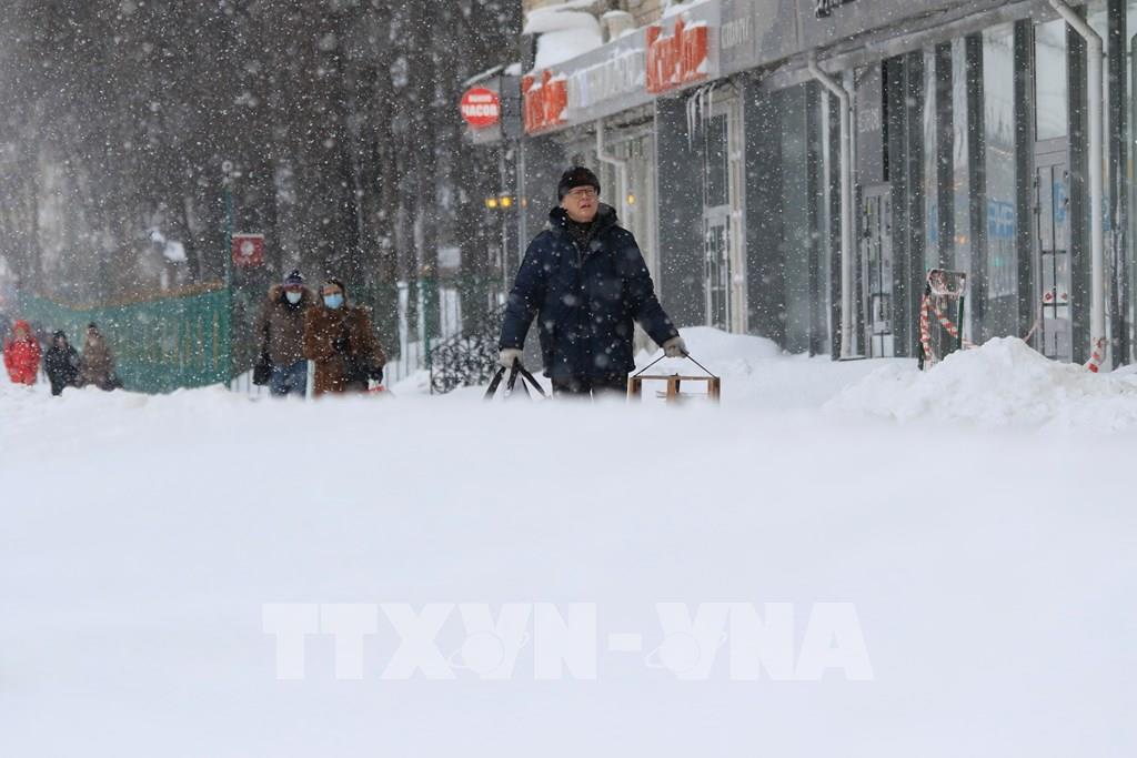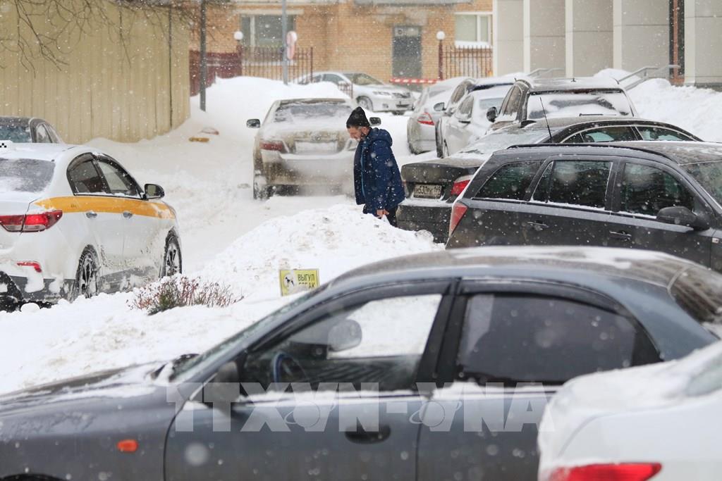 Tuyết rơi dày khiến cho việc đi lại của người dân Moskva gặp nhiều khó khăn. Ảnh: Trần Hiếu - PV TTXVN tại Nga