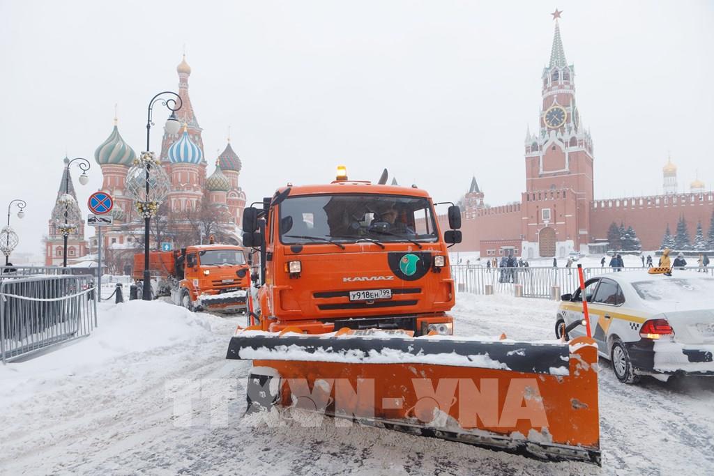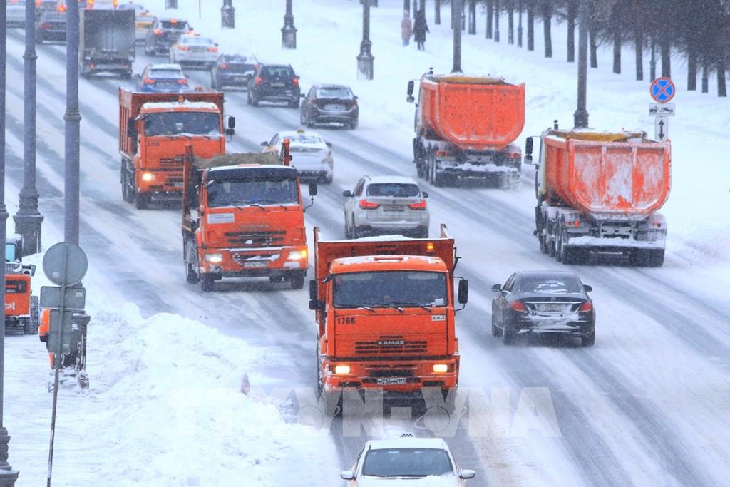 Chính quyền thành phố Moskva huy động gần 14.000 phương tiện chuyên dụng để dọn tuyết trên khắp các tuyến phố. Ảnh: Trần Hiếu - PV TTXVN tại Nga