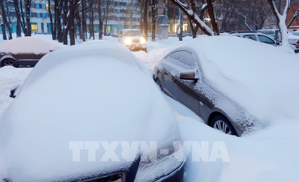 Mưa tuyết lớn khiến cuộc sống người dân Moskva gặp nhiều khó khăn. Ảnh: Trần Hiếu - PV TTXVN tại Nga