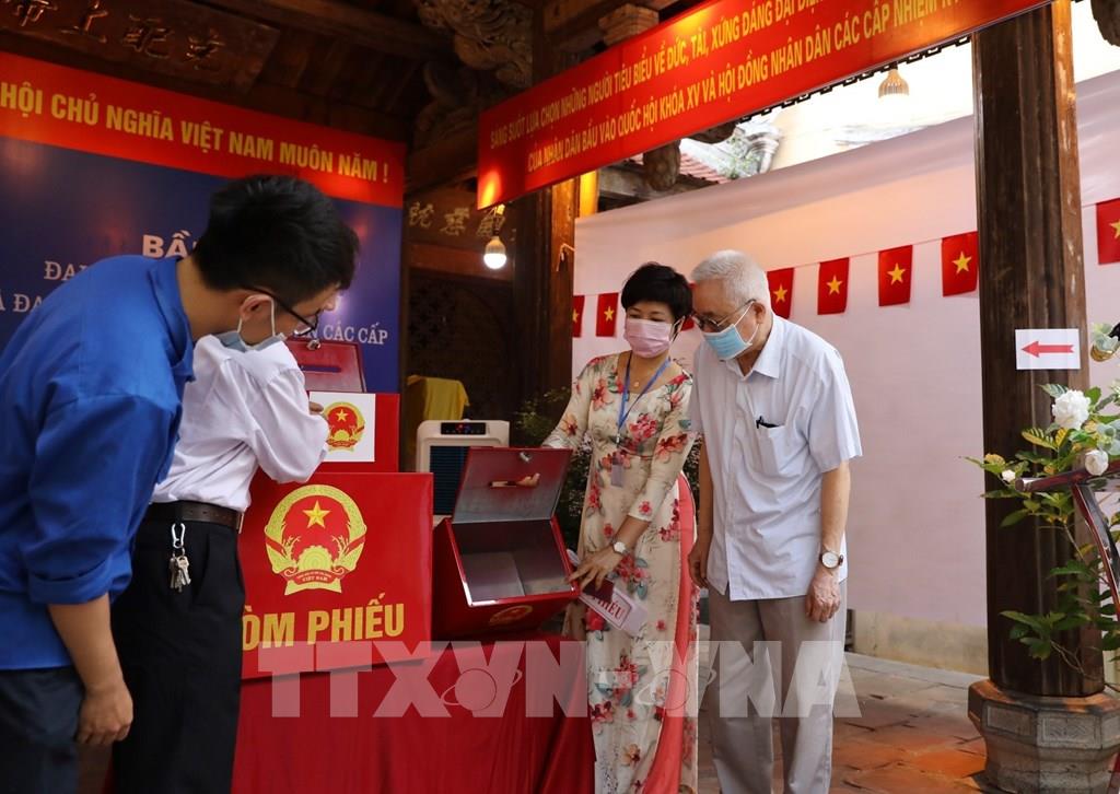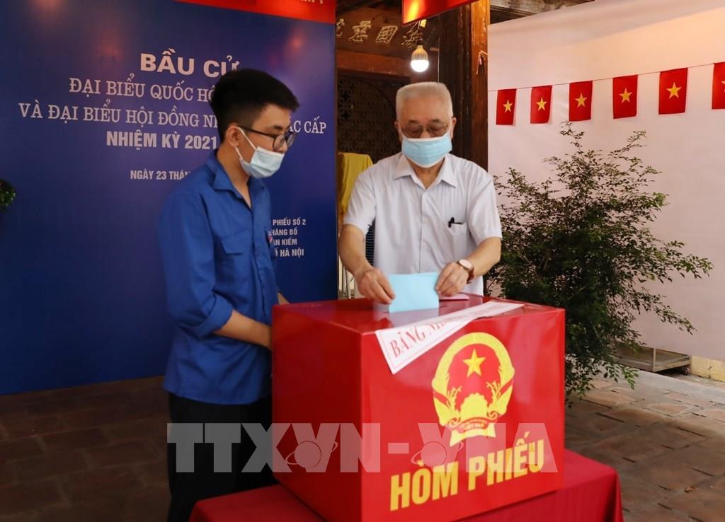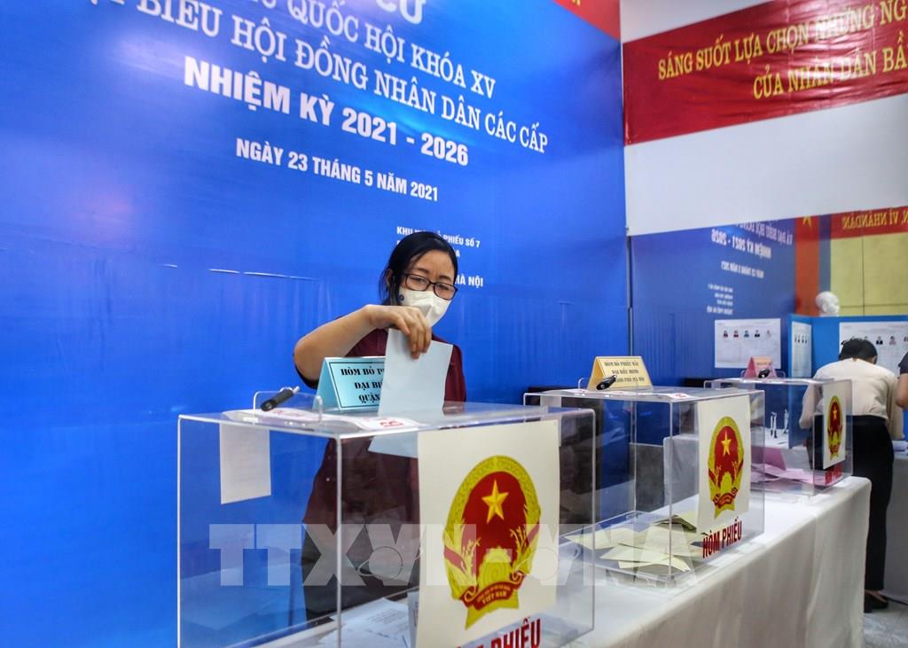 Quang cảnh Khu vực bỏ phiếu số 7, phường Xuân Tảo, quận Bắc Từ Liêm, Hà Nội. Ảnh: Nguyễn Điệp - TTXVN ; Ngày 23/52021, hơn 69 triệu cử tri trên cả nước sẽ tới 84.767 khu vực bầu cử thực hiện quyền và nghĩa vụ công dân bầu đại biểu Quốc hội khóa XV và đại biểu HĐND các cấp nhiệm kỳ 2021 - 2026. Ảnh: TTXVN