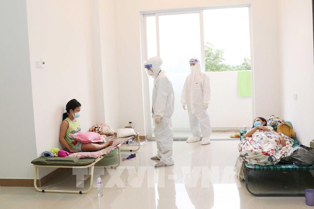 Nhân viên y tế thăm hỏi bệnh nhân nhiễm COVID-19 không triệu chứng. Ảnh: Xuân Khu-TTXVN