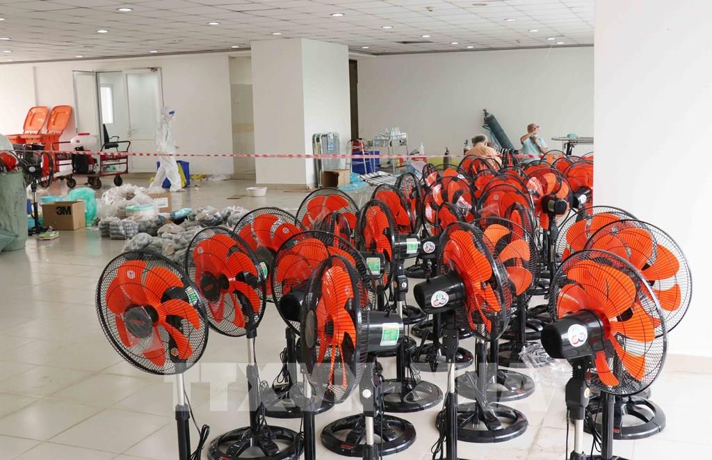 Khu điều trị bệnh nhân COVID-19 sử dụng quạt điện để làm mát cho các phòng của bệnh nhân. Ảnh: Xuân Khu-TTXVN