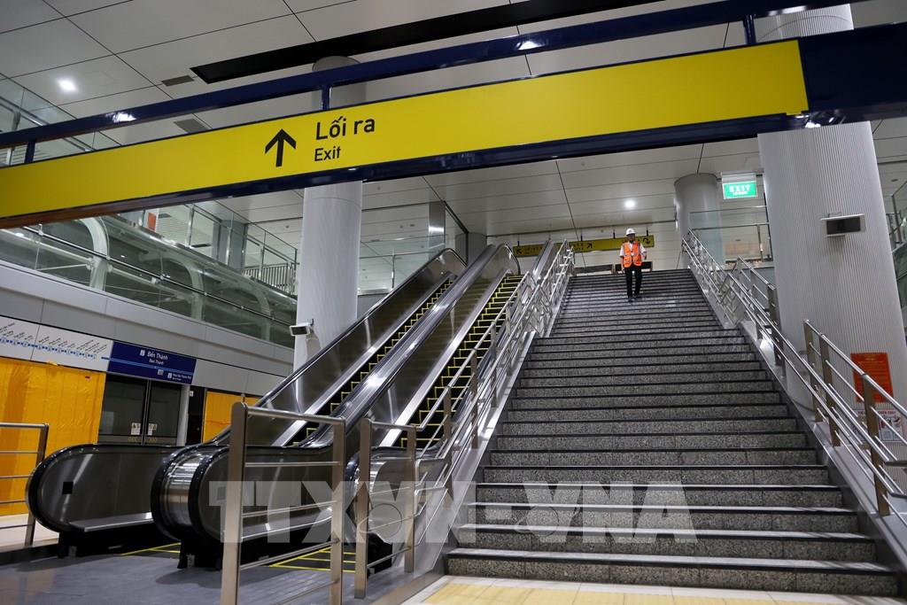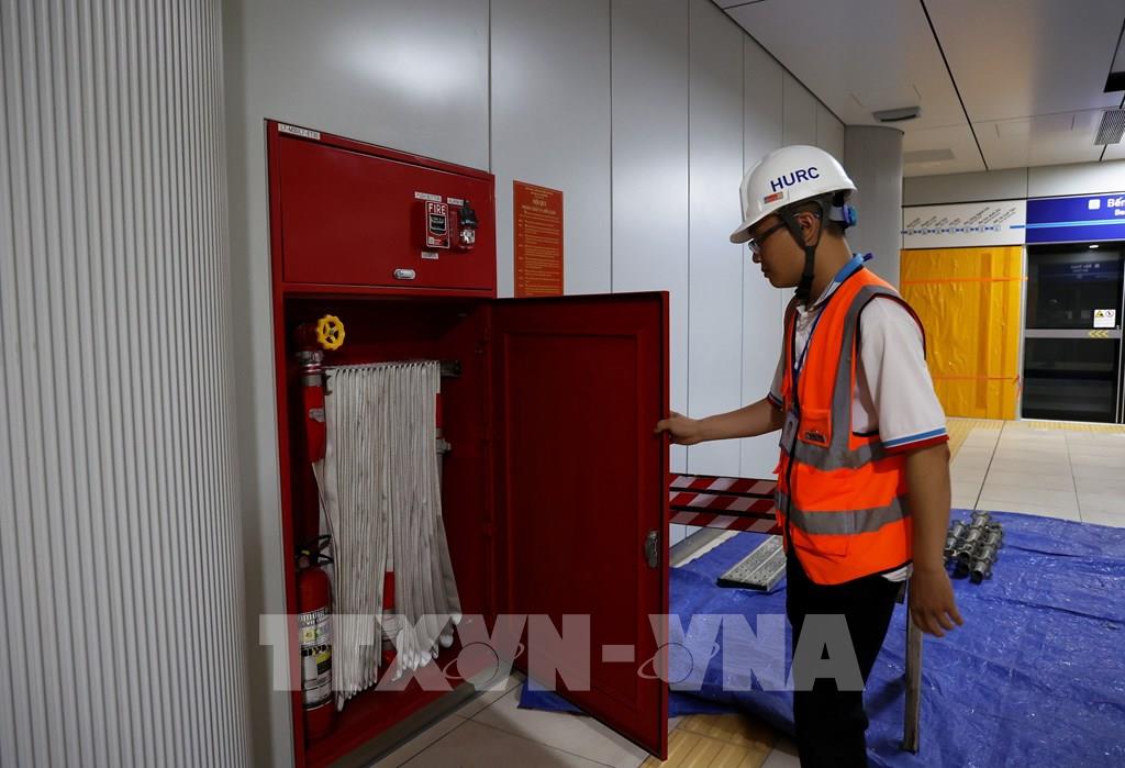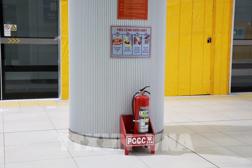 Hệ thống an toàn phòng cháy chữa cháy trong ga ngầm Bến Thành tuyến metro số 1 đảm bảo đầy đủ. Ảnh: Hồng Đạt - TTXVN