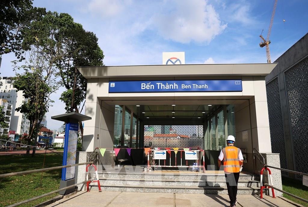 Cửa lên xuống số 1 ga ngầm Bến Thành tuyến metro số 1. Ảnh: Hồng Đạt - TTXVN