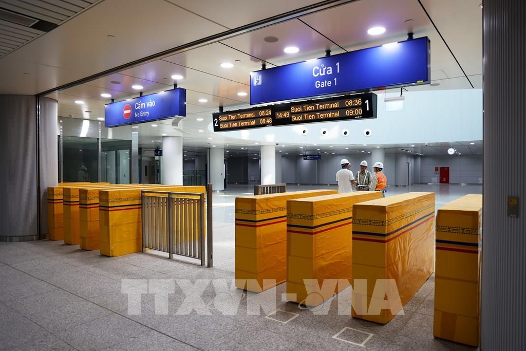 Các cổng kiểm soát vé đã được hoàn thành lắp đặt với có hai lối vào chia thành 16 luồng, trong đó có 4 luồng rộng hơn dành cho người khuyết tật. Ảnh: Hồng Đạt - TTXVN