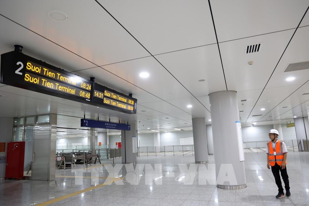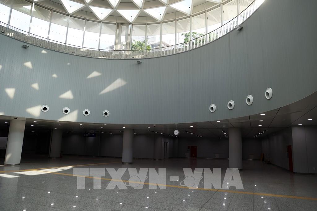Khu vực sảnh chờ để xuống ke ga - nơi phục vụ hành khách lên, xuống tàu, xếp, dỡ hàng hóa trong ga metro. Ảnh: Hồng Đạt - TTXVN
