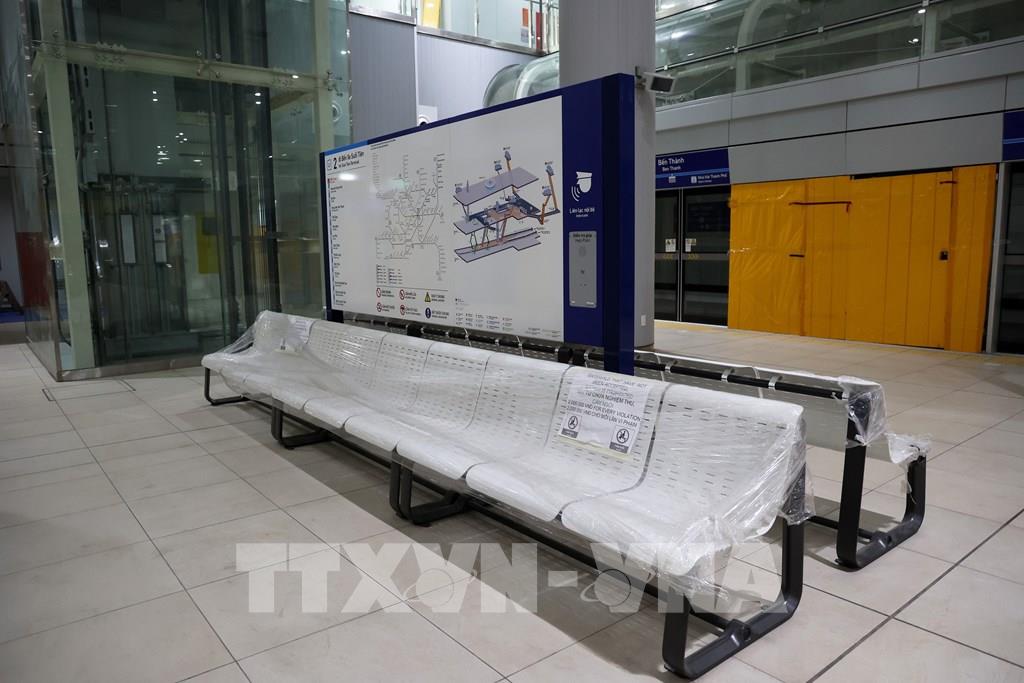 Dãy ghế chờ cho hành khách trong Nhà ga ngầm Bến Thành tuyến metro số 1. Ảnh: Hồng Đạt - TTXVN