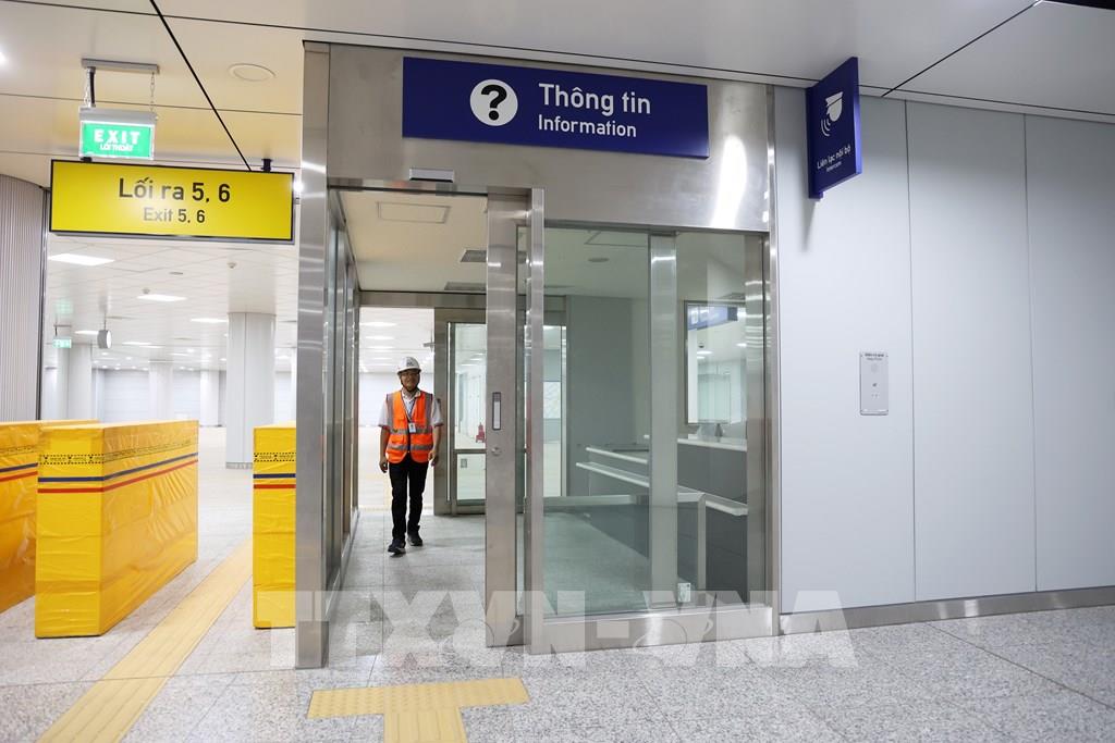 Điểm trợ giúp khách hàng trong ga ngầm Bến Thành tuyến metro số 1. Ảnh: Hồng Đạt - TTXVN