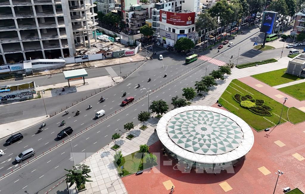 Khu vực giếng trời lấy sáng tự nhiên của nhà ga Bến Thành nhìn từ trên cao. Ảnh: Hồng Đạt - TTXVN